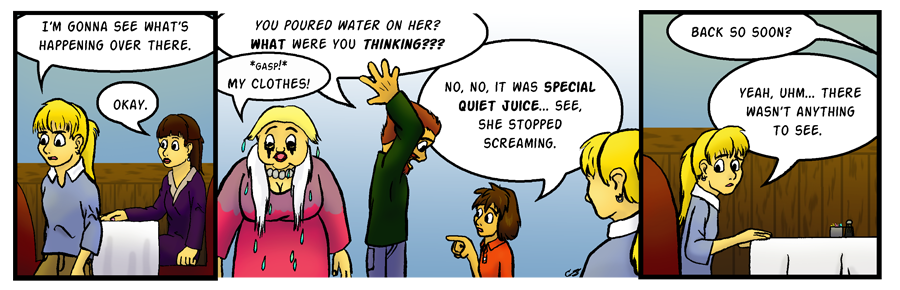 This dynamic between Caitlin and her dad will be popping up time and again: She knows she's in trouble, there's not point in crying "It wasn't me!", so instead of denying it, justify it! And I mean honestly, at some point that's really all you can do, whether you're actually justified or not.