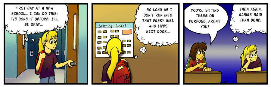 I hated seating charts so much as a kid. I always got stuck sitting next to the nose-picker or the snorter; whatever kid had some sort of nasal affliction in class was the one I tended to get stuck next to. Although that may be better than being stuck next to Caitlin... :/