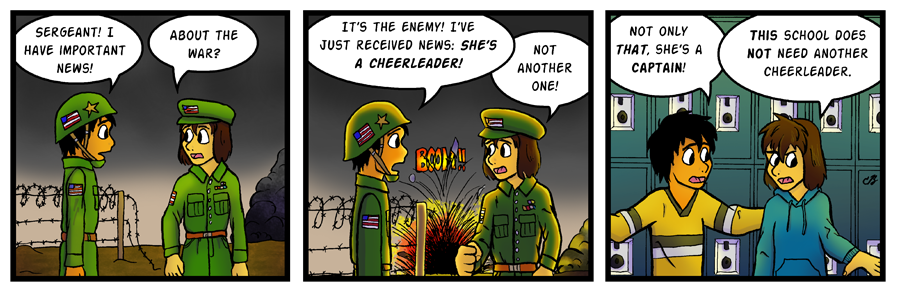 Yes, the new girl is a cheerleader. As a kid I recognized the necessity of making her and Caitlin as polar opposites as they possibly could be, and to this day I think it was the right call. Yet another instance where the original script probably ought not be messed with.