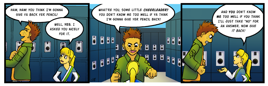 Any time you're a 6-foot middle school bully facing a cheerleader who's not scared of you, you should consider being worried yourself.