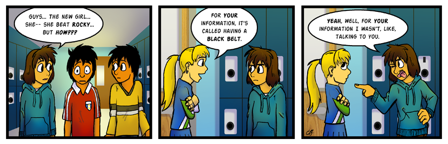 I like Caitlin's expression in the last panel; it's very similar to her picture in the school yearbook. ^_^