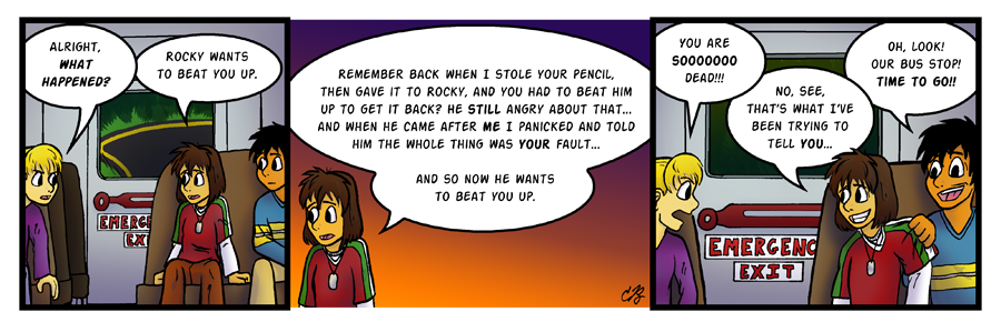 This strip represents something of a turning point in the JC comics... Back in 2010 when I was re-drawing all these strips, I was also trying to get a syndicate to pick up my work. That obviously never happened. However, during the submission process and as I continued to think about whether or not I wanted to have my strips syndicated, I realized when it came down to it I did NOT want them syndicated or published by someone else. I also realized syndicated newspaper strips have poor art quality because the panels are so small most artists are trying desperately not to draw too much detail for fear the audience is unable to read them. This combination of realizations let me to the ultimate realization: I very much hated the idea of altering my art because a syndicate tells me they do or don't want to see something and therefore will or will not publish it... and I hated the idea of altering my art to satisfy newspapers just as much.