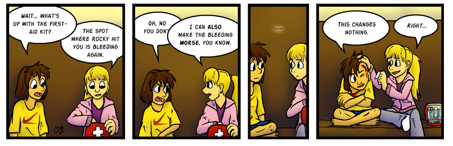 Hats off to Sarah for not clocking that rotten kid. She could have just taken the easy route and made the bleeding worse.