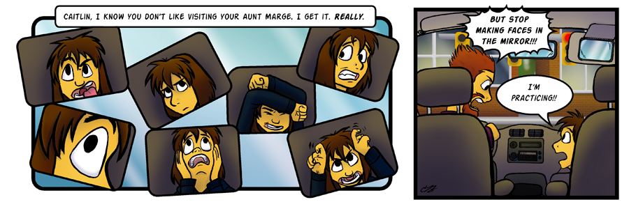 This is the beginning of the strips drawn in 2013! This page was fully inked 06/16/2013! It was really hard to go back and try to draw these characters the way I'd drawn them 3 years prior, but it was a good challenge and I feel it ended well. The biggest difference you will see in these strips is the inking; I've never been particularly good at digital backgrounds, and I don't think it looked as good as I would've liked. In 2013, as I was running out of the original 2010 strips, I decided to start inking the backgrounds more fully. There will still be SOME digital backgrounds, but not like there used to be. I personally consider this to be a huge improvement, all things considered.