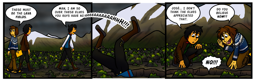 Lava fields tend to look very different depending on how old they are and how much they have changed recently. Based on the amount of green moss on the rocks in this comic, it can reasonably be assumed this field hasn't seen any drastic changes recently.