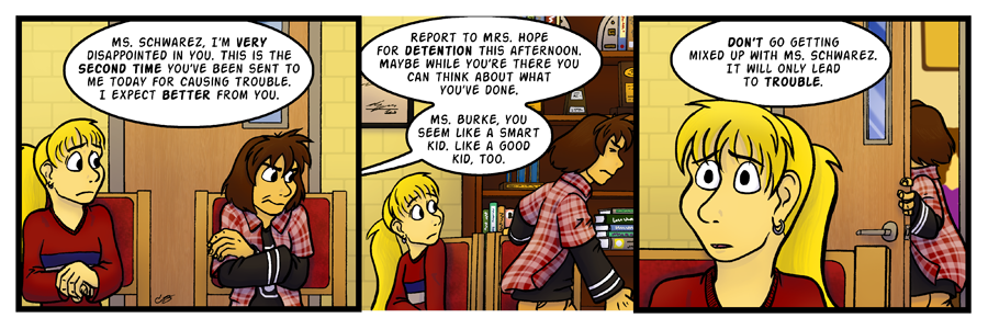 The principal says that as if Sarah hasn't ALREADY gotten into trouble with Caitlin.