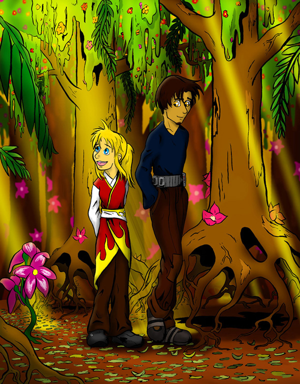 The original drawing was done on 400-weight paper in December 2010 with a blue drafting pencil and a Pentel Pocketbrush Pen. The coloring in Adobe Photoshop CS5 was done sometime in June or July 2011.