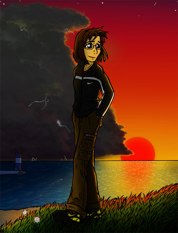 This was just one big practice session in Photoshop. I tend to draw myself pretty frequently, truth be told, since I use myself for experiments when I'm too lazy to make up a new character for random projects such as this one. It took me a very long time, but I ended up having a blast (although at one point the water got on my nerves). This was all about coloring, masks, and brushes in Photoshop. I like to think some improvement in my Photoshop abilities was made, though not much.