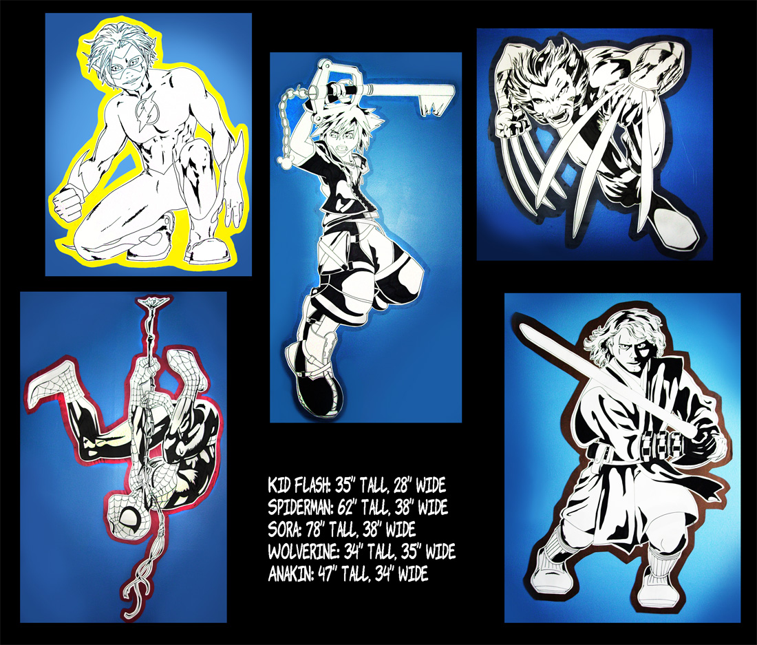 Kid Flash is Copyright DC Comics. Spiderman and Wolverine are Copyright Marvel Comics. Sora is Copyright Square Enix. Anakin is Copyright Lucasfilm Ltd. Again if anyone knows who originally drew Kid Flash, Spiderman and Wolverine I would be very grateful for the artists' names so I can properly credit them.