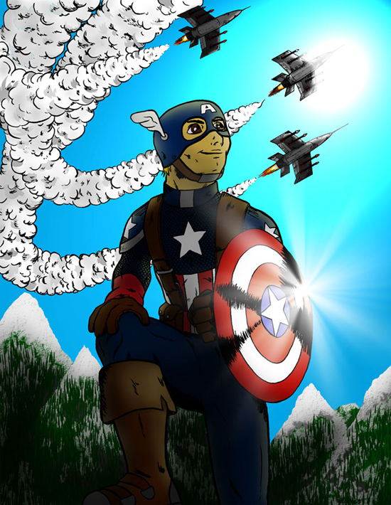 Captain America does not belong to me, this is a fanart. Captain America is Copyright Marvel, Inc. Inked on 11x14" bristol board with a Pentel Pocketbrush Pen, colored in Adobe Photoshop CS5.